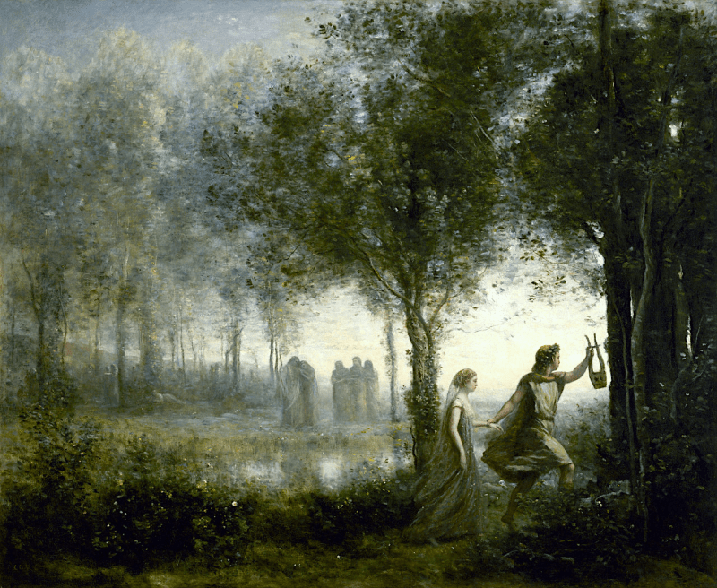 Una vez en la tierra, decidió girarse para por fin, ver a su amada, sin percatarse de que Eurídice, aún tenía un pie en el inframundo. Hecho por el cual se desvaneció y jamás pudo recuperarla.