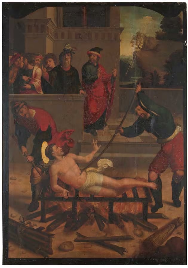 Después de haber sido torturado hasta la extenuación, el emperador -eso dice la leyenda- ordenó asarlo desnudo atado a una parrilla y con horcas de hierro haciendo presión sobre su cuerpo. Seguramente, este sea uno de los motivos por el que es el patrón de los chefs, dueños de restaurantes y sumilleres, entre otros muchos oficios.
